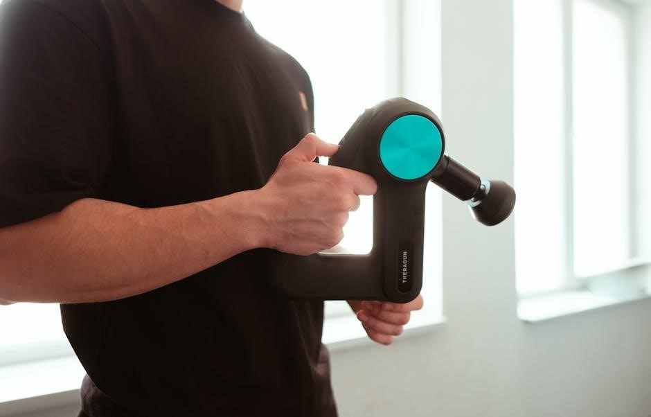 Refer to the massage gun user manual PDF for detailed guidance on powering the device, selecting intensity levels, and utilizing various massage head attachments safely․